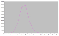 Die Erdös Number ist eine Darstellung des weltweiten Netzwerkes von Mathematikerinnen und Mathematikern. Ausgehend von Pál Erdös, welcher die Erdös-Rényi-Netzwerke mit entworfen hatte, erhalten die Autorinnen und Autoren von mathematischen Artikeln eine Nummer. Dabei hat Erdös die Nummer 0, alle die mit ihm einen Artikel geschrieben haben (wie zum Beispiel Alfréd Rényi) die Nummer 1. Diejenigen, die wiederum mit Personen mit der Erdös Number 1 einen Artikel veröffentlichten, erhalten die Nummer 2 und so weiter. Die durchschnittliche Erdösnummer ist, bei 268015 Menschen, die überhaupt eine besitzen, ≈5, genauer 4,65. [15] In Abbildung 7 ist die Verteilung dieser Nummer graphisch dargestellt. Die Häufung ist deutlicht zu erkennen. Dies sind zwar nicht die sechs Schritte, welche Milgram aus seinem Experiment berichtet hatte, dafür sind hier bedeutend weniger Menschen beteiligt, die zudem mindestens einen ähnlichen Bildungshintergrund haben und somit diese Barriere nicht überwinden müssen, wie es die Briefe von Milgram taten. Außerdem war Erdös mit fast 1.400 publizierten Artikeln und einer besonders nomadischen Lebensweise eine Ausnahmefigur, die so in anderen Netzwerken nicht gefunden werden kann. Seit Erdös 1996 starb ist es fernerhin nicht mehr möglich die Erdös Number 1 zu erlangen. Trotzdem zeigt dieses Beispiel, wie relativ klein die Welt, zumindest die der Mathematik, sein kann. Die Abbildung zeigt uns ein weiteres Merkmal der Small World Netzwerke: die Verteilung von Hubs und Vektoren folgt immer annähernd einzelnen Potenzfunktionen. Das ist bei Darstellungen von Daten aus SW-Netzwerken in Funktionsgraphen mit den Achsen Rank und Links pro Hubs ebenso. Dort bilden sich immer annähernd exponentielle Kurven.
